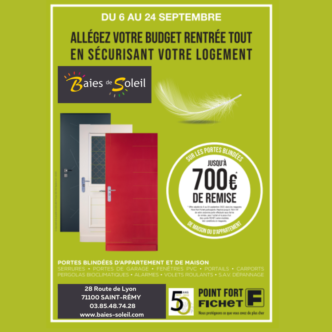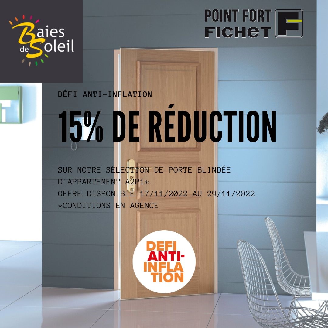 Baies de Soleil défie l'inflation et vous offre une remise de 15% sur les portes blindées * N'attendez plus pour concrétiser votre projet !!! *voir conditions en magasins