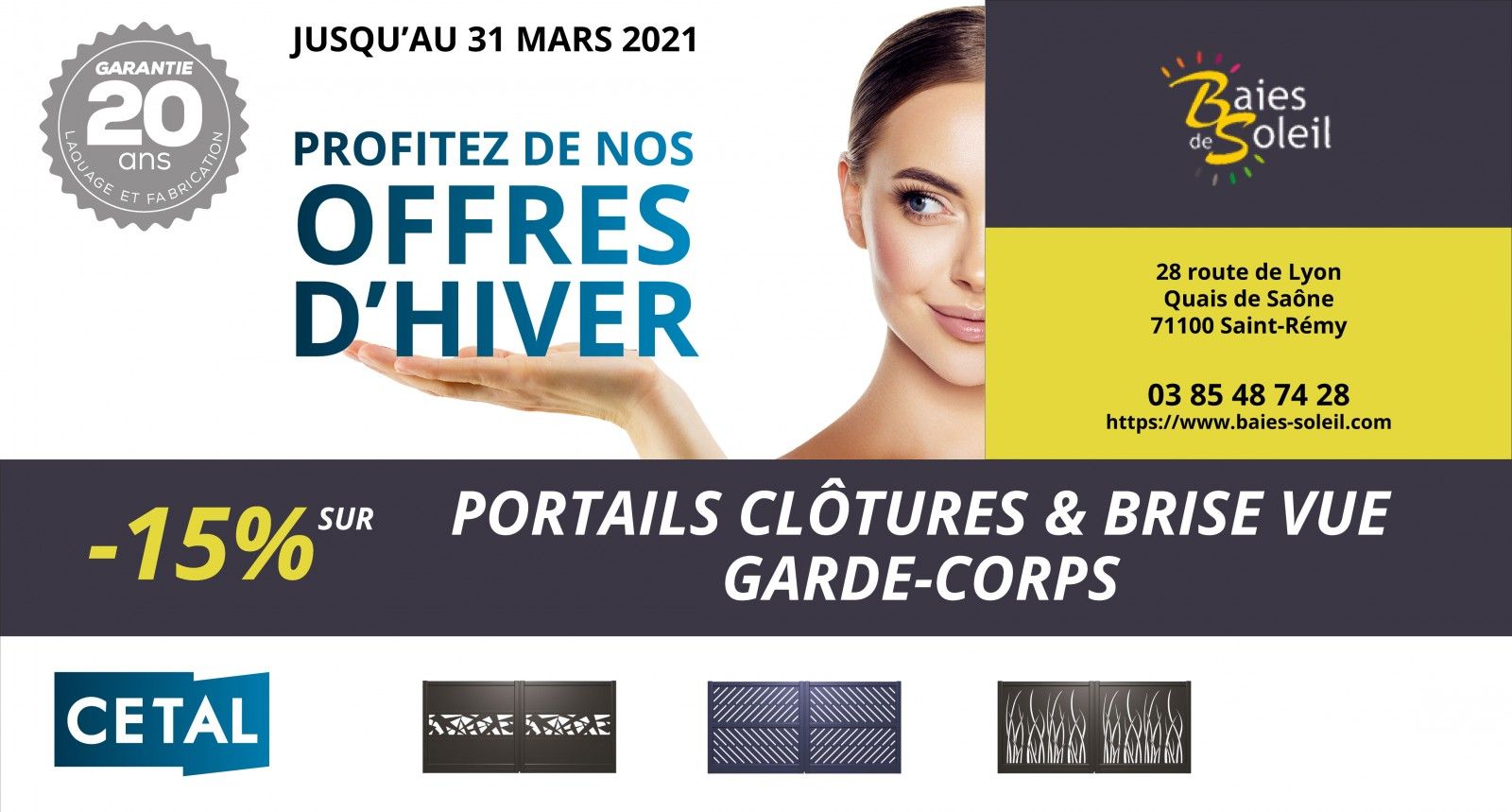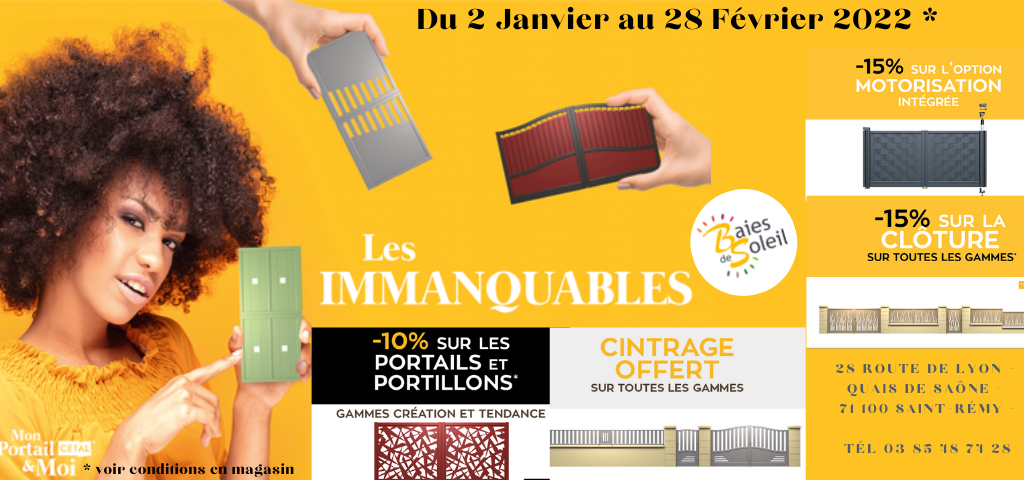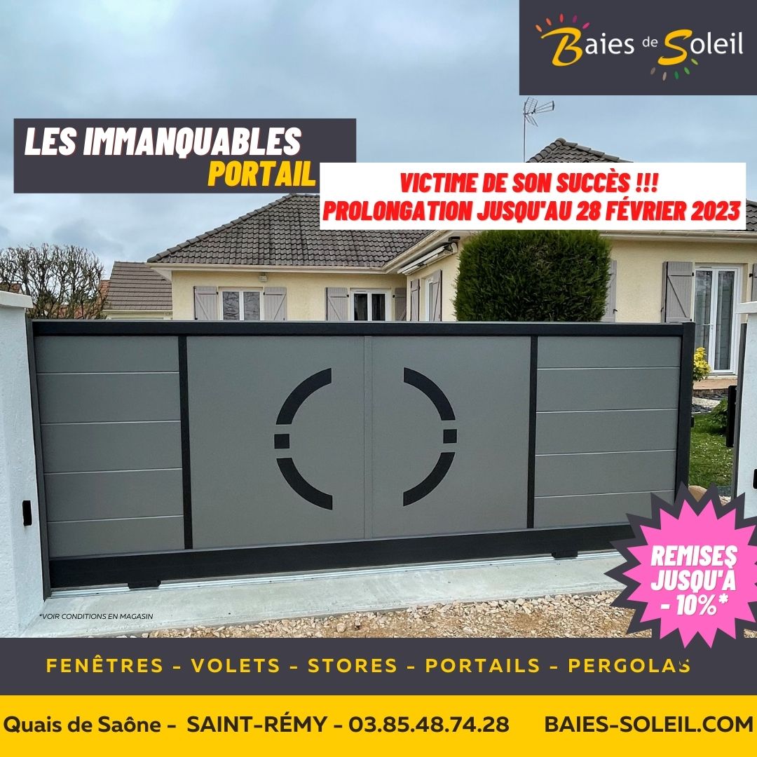 C'est le moment de concrétiser votre projet de portail. Ne manquez pas nos prolongations sur les offres immanquables limitées dans le temps : fin de l'offre Mardi 28 Février 2023 ! Des offres imbattables également cette année sur les portillons, clôtures, garde-corps et motorisations intégrées !