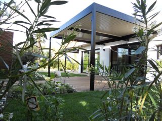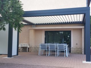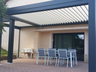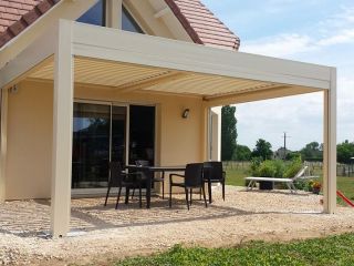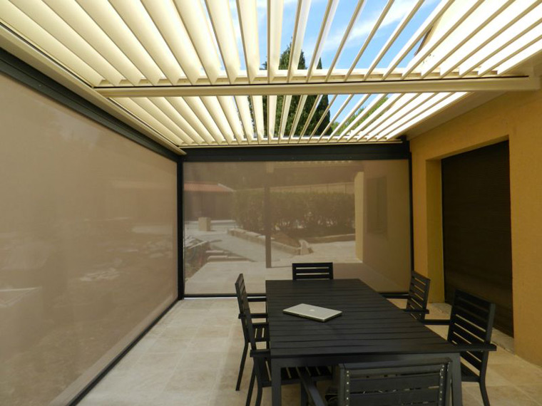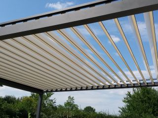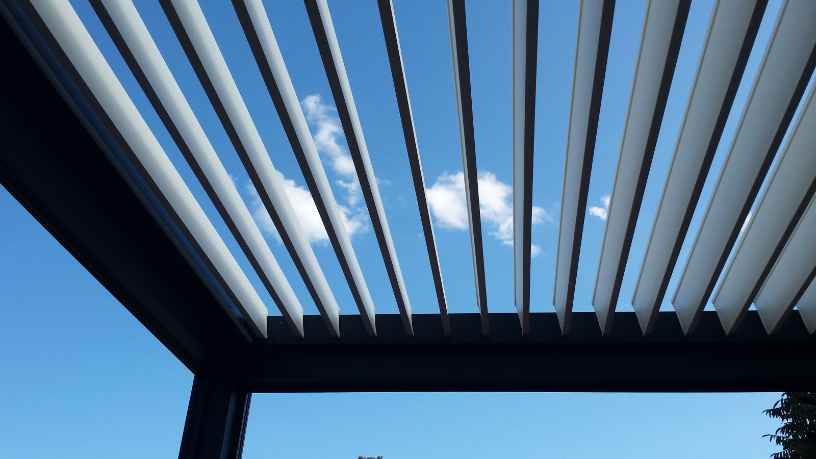 Pergola à lames orientables en toiture: c'est la solution idéale pour profiter de sa terrasse en plein été, sous une chaleur ou un Soleil étouffant ! Créez un espace de vie extérieur, vivable sous de grosse chaleur grâce à l'effet de ventilation produit par la rotation des lames de toiture
