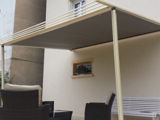 Contempler la nuit étoilée, en train de siroter une boisson dans votre spa ? Choisissez plutôt la pergola toile : elle vous protègera de l'ensoleillement comme un store banne en journée, mais avec le côté chic de créer votre terrasse aménagée. Des poteaux extérieurs viennent délimiter l'espace - et vous rétractez la toile pour profiter de toute la lumière ou des étoiles !